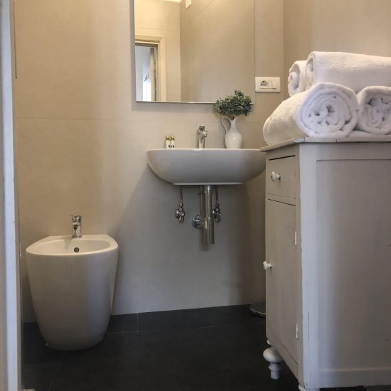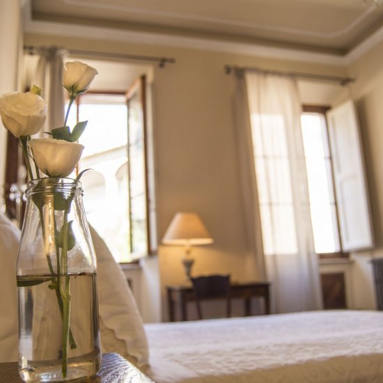 La camera ha due grandi finestre con affacci all’ultimo piano sulla medievale Via del Casato.