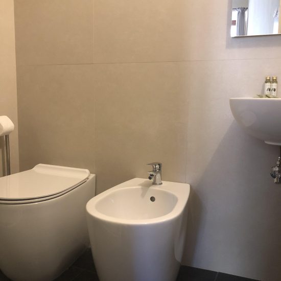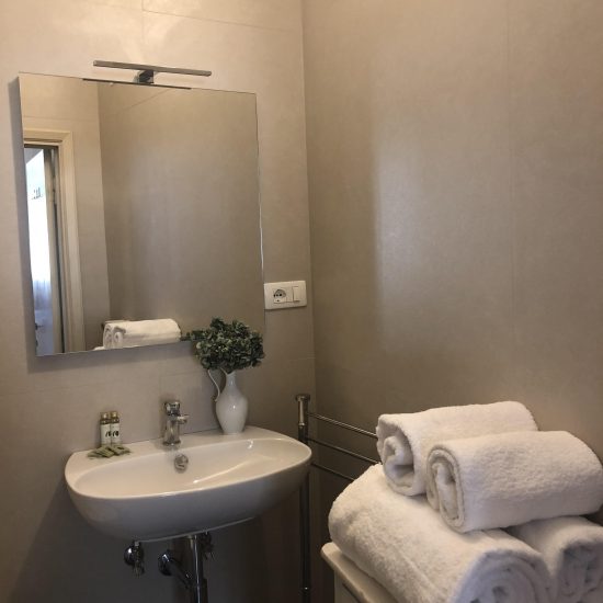 Camera matrimoniale o doppia con letti singoli, bagno privato con set cortesia e biancheria e dotata di aria condizionata. É possibile aggiungere un letto extra al prezzo di 45 Euro a notte compresa la prima colazione.