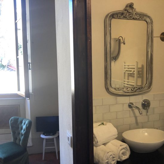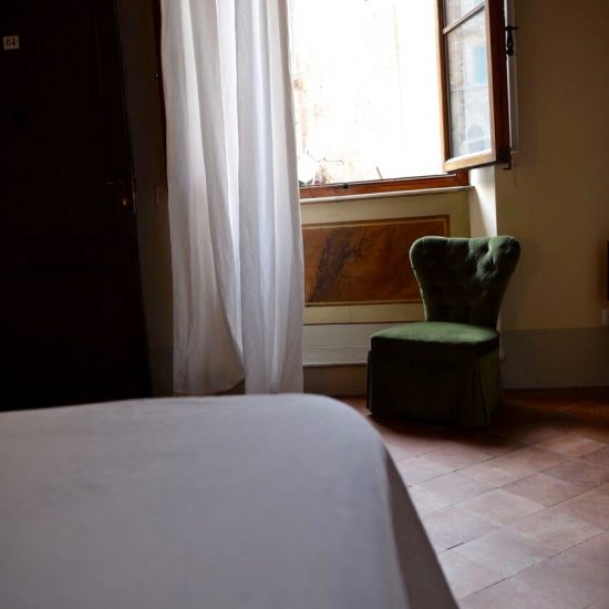La camera ha una grande finestra con affacci all’ultimo piano sulla medievale Via del Casato. All’interno si trova un antico soffitto a travi dipinte a mano risalenti alla fine del settecento.